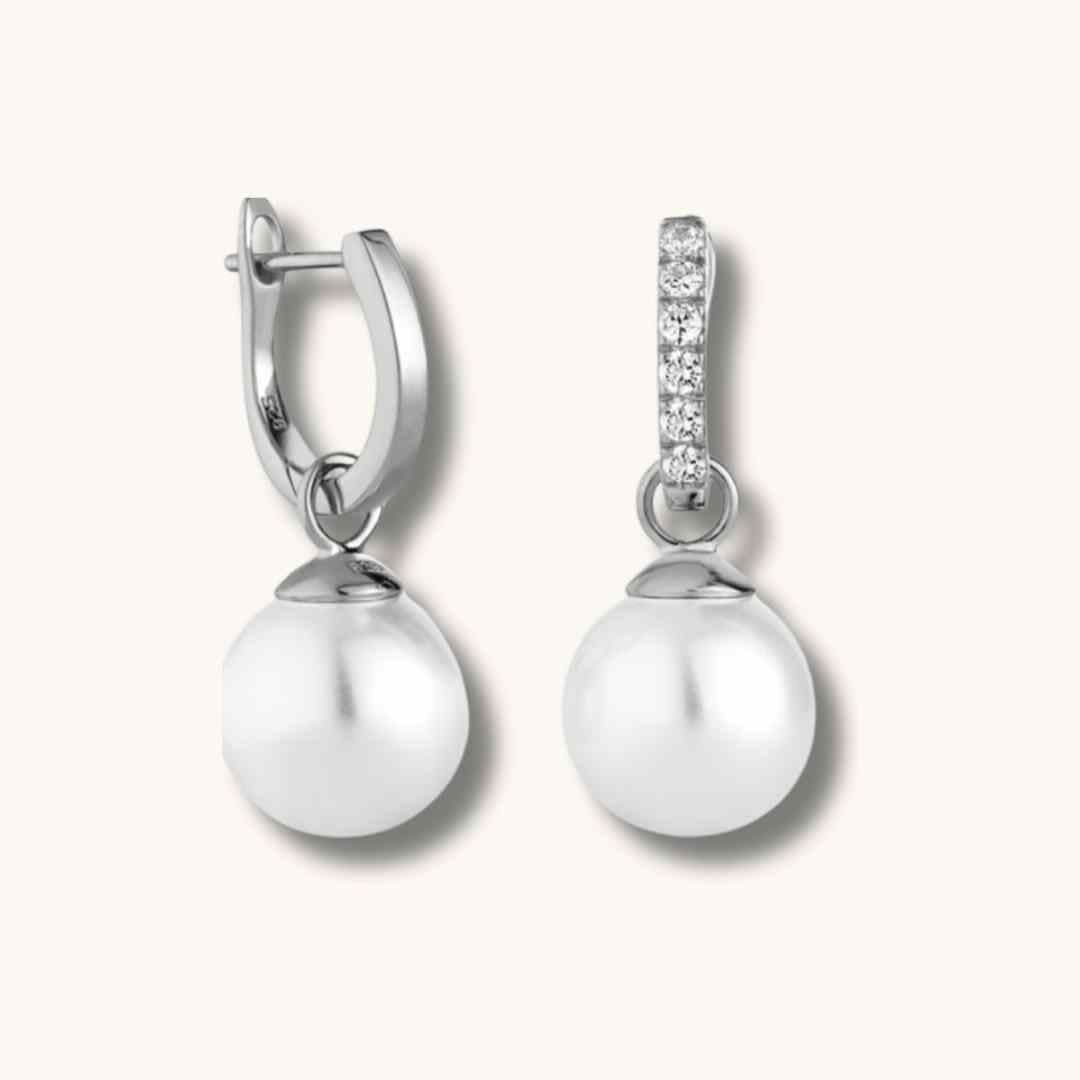 These detachable pearl drops are 'shell pearls'; real freshwater pearls that are ground and reconstituted into these large pearls (we just couldn't find consistent quality from Mother Nature.) With their sterling silver loop which is rhodium-plated for anti-tarnish and anti-allergy properties.